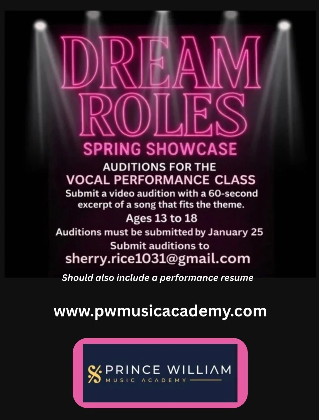 Step into the spotlight and take center stage in Dream Roles, our exciting end-of-year vocal showcase! This unforgettable performance gives every student the chance to shine—performing the role they’ve always imagined playing. Whether you’ve dreamed of belting a show-stopping number from Broadway, crooning a heartfelt ballad from a classic musical, or unleashing your inner villain or hero, this is your moment to make that dream come alive.